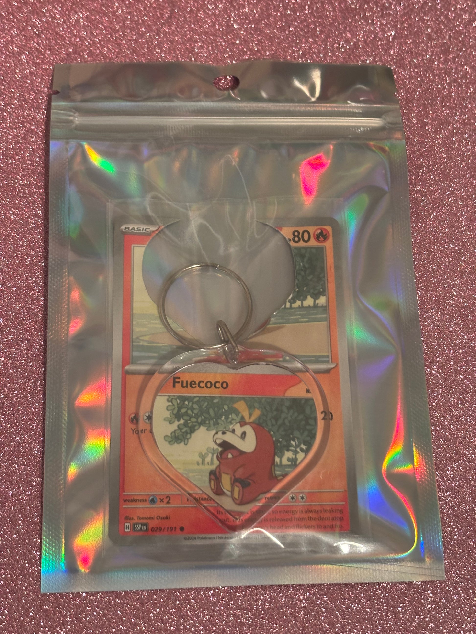 KEYCHAIN MADE FROM Upcycled POKÉMON CARD Fuecoco 029/191 SSP 2024 Illus. Tomomi Ozaki