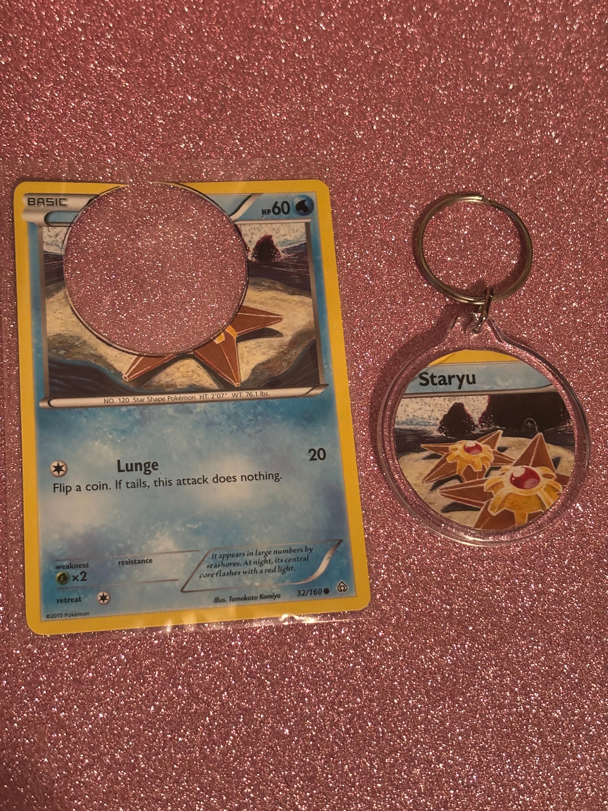 KEYCHAIN MADE FROM Upcycled POKÉMON CARD Staryu 32/160 2015 Illus. Tomokazu Komiya